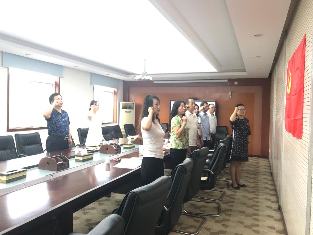 在重温入党誓词,重唱国歌,缴纳了7-9月党费,学习了《中国共产党章程》第二章《党的组织制度》等规定运作完成后,结合开展“不忘初心、牢记使命”主题教育活动安排,领导班子和支部开展了主题教育第三专题“弘扬优秀师德师风,展现榜样力量”宣传教育,学习“时代楷模”张富清先进事迹《一位老英雄的初心本色》,全体党员结合工作实际进行讨论交流,副主席杨茜就下午进行的“不忘初心、牢记使命”主题教育活动——与共和国同成长、与新时代齐奋进”庆祝新中国成立70周年教职工歌咏比赛的组织工作进行了详细的安排和布置,最后集体观看了视频《新中国的第一:第一个大型油田》,最后,全体党员齐唱《我和我的祖国》。