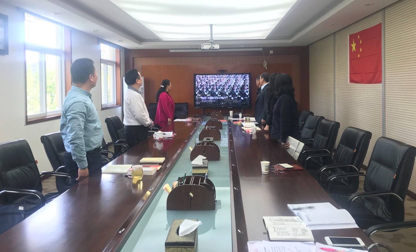 全体党员按照“支部主题党日”规定动作的要求,齐唱国歌,郭琬云同志带领全体党员重温入党誓词,领学《中国共产党党章》总纲5-8段。