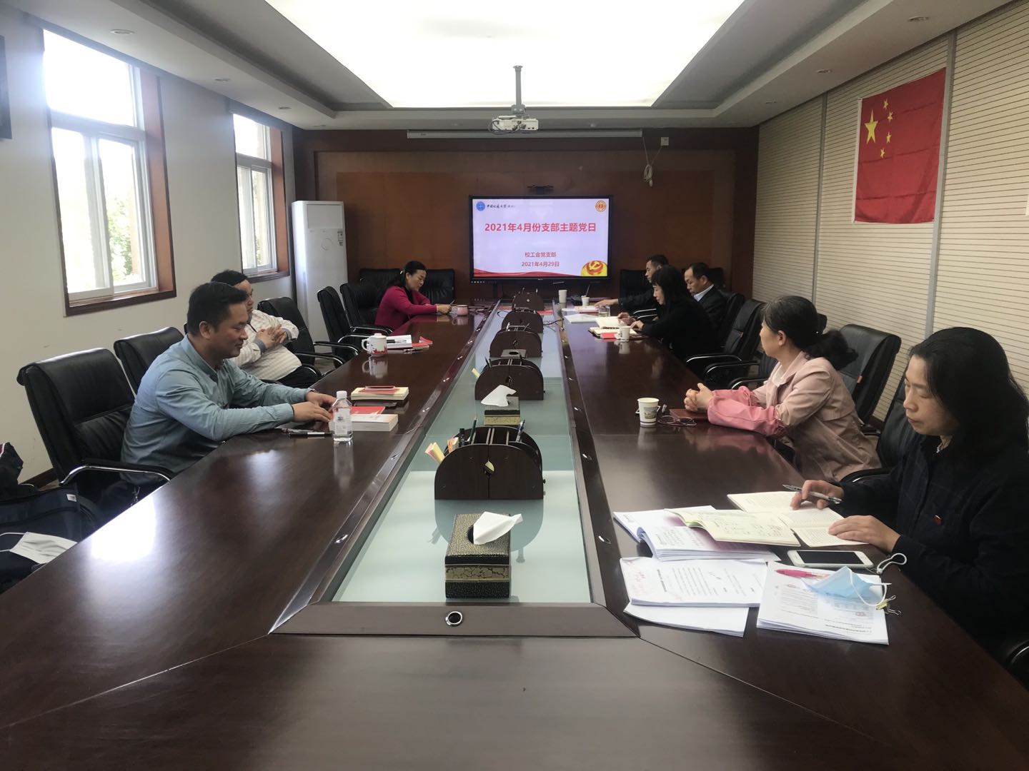 4月29日下午,工会党支部全体党员在教工活动中心三楼会议室开展4月份支部主题党日活动。本次活动的主题是“学习贯彻习近平总书记在清华大学考察时重要讲话精神;学习贯彻习近平总书记对打击治理电信网络诈骗犯罪工作作出的重要指示精神”,支部书记于荣萍同志主持活动。